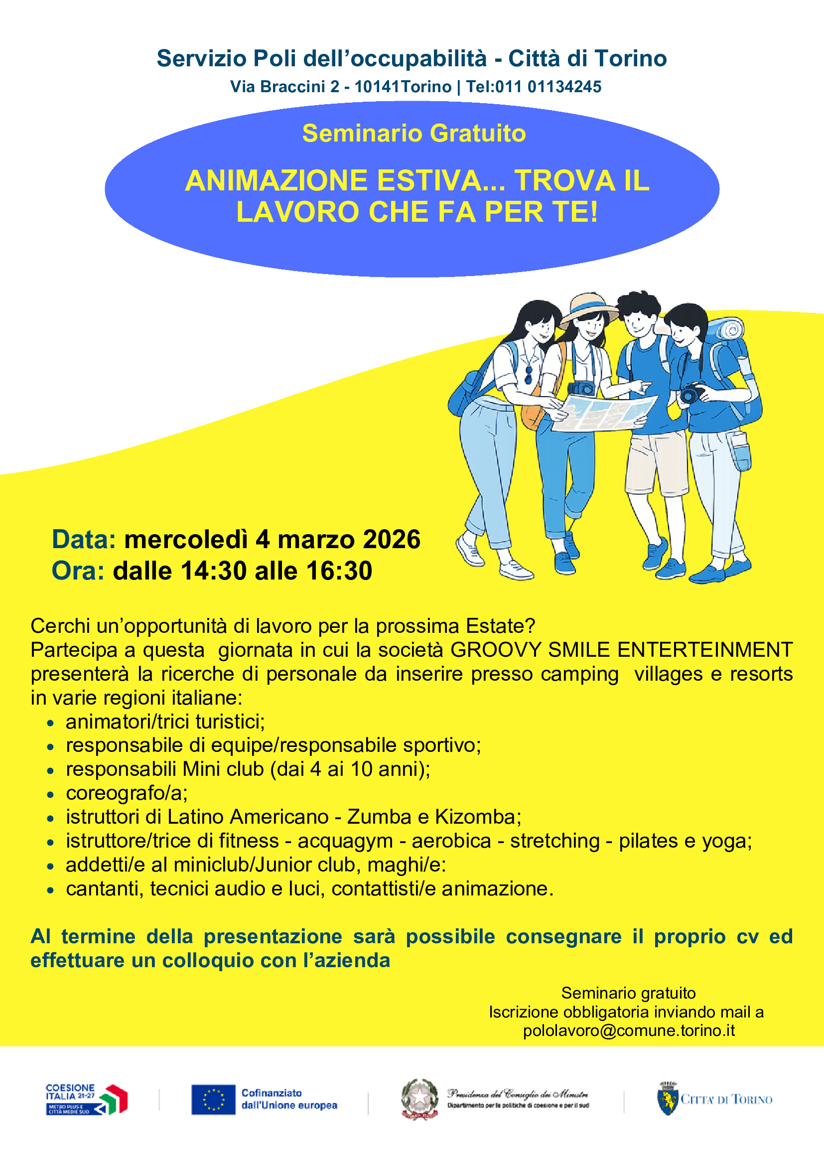 Iscrizione obbligatoria inviando mail a pololavoro@comune.torino.it