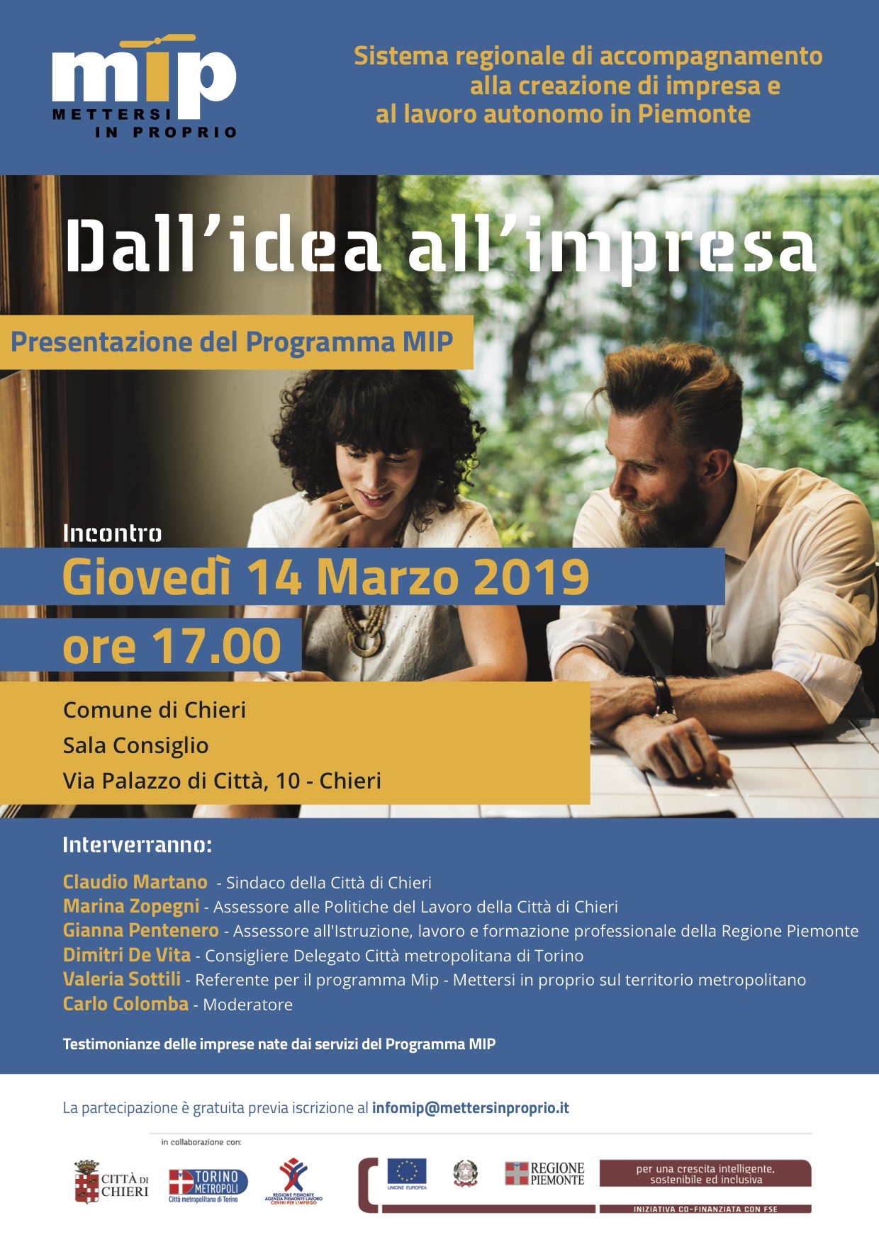 La partecipazione è gratuita, previa registrazione inviando una mail a infomip@mettersinproprio.it