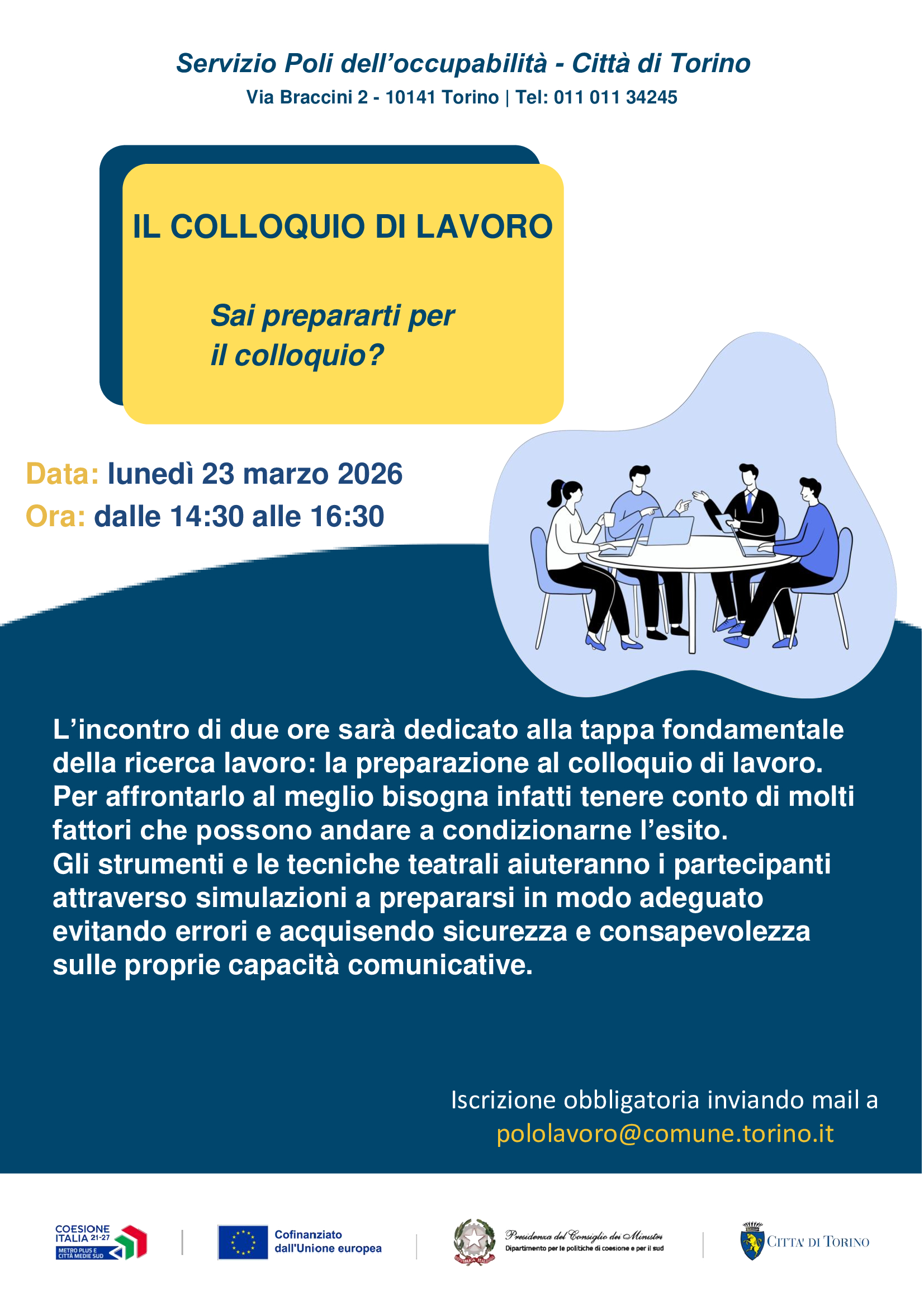 L’incontro di due ore sarà dedicato alla tappa fondamentale della ricerca lavoro: la preparazione al colloquio di lavoro.