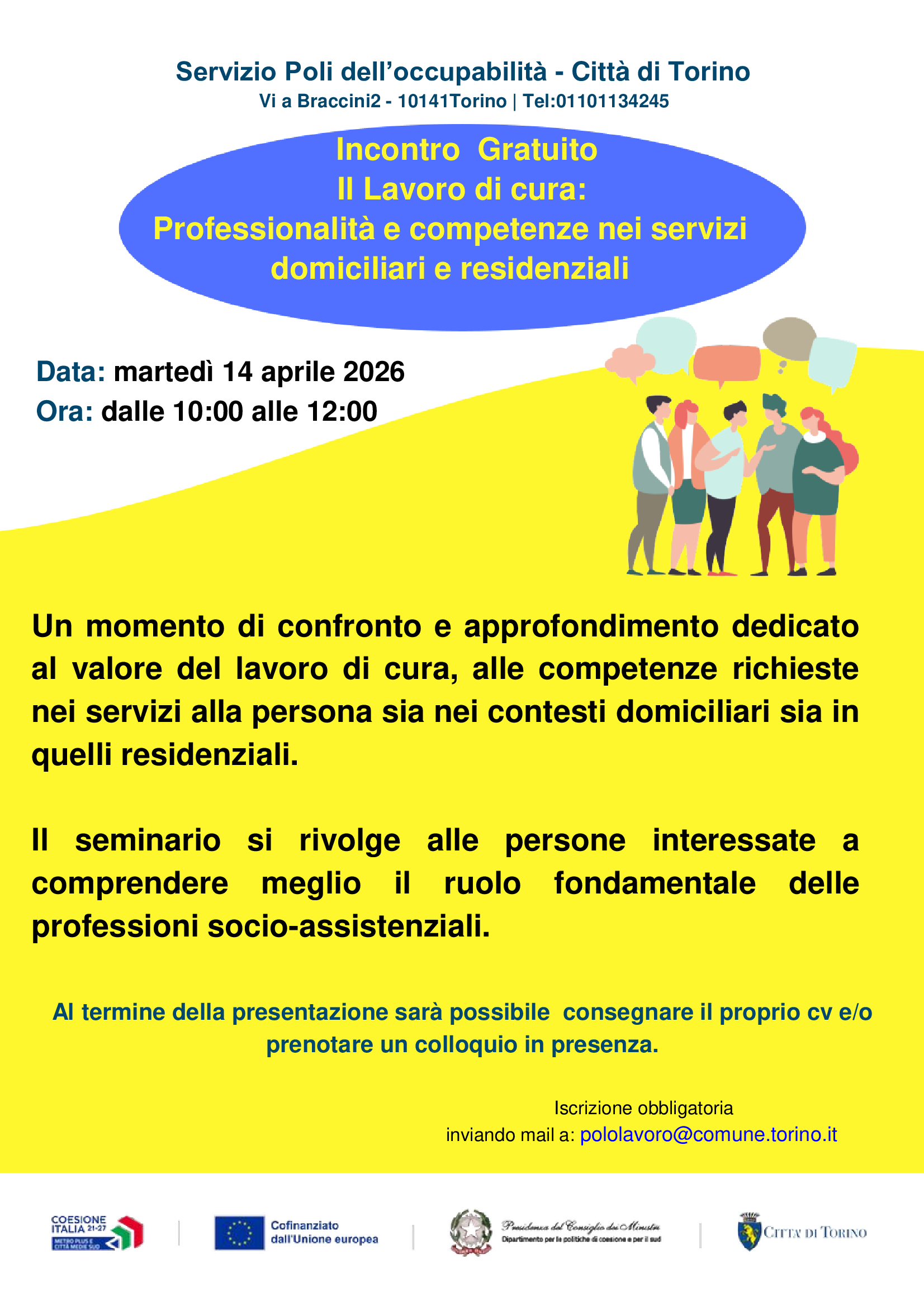 Tel:01101134245 inviando mail a: pololavoro@comune.torino.it