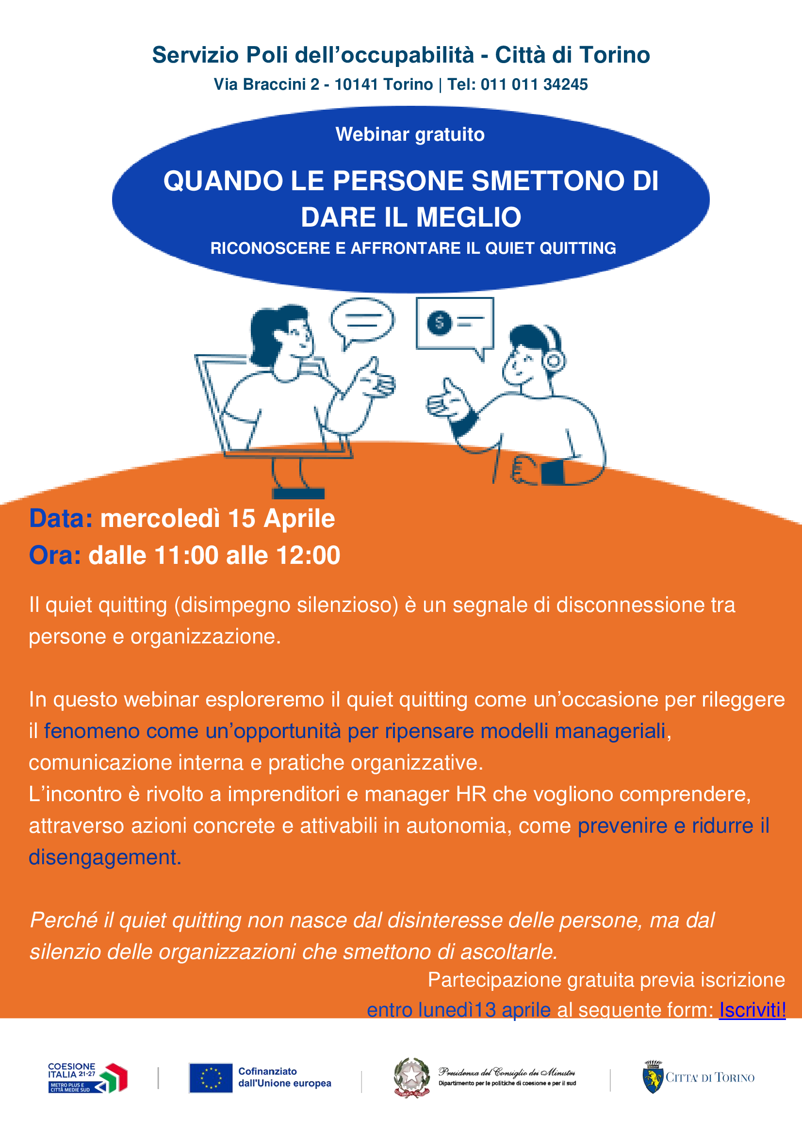 In questo webinar esploreremo il quiet quitting come un’occasione per rileggere il fenomeno come un’opportunità per ripensare modelli manageriali, comunicazione interna e pratiche organizzative.