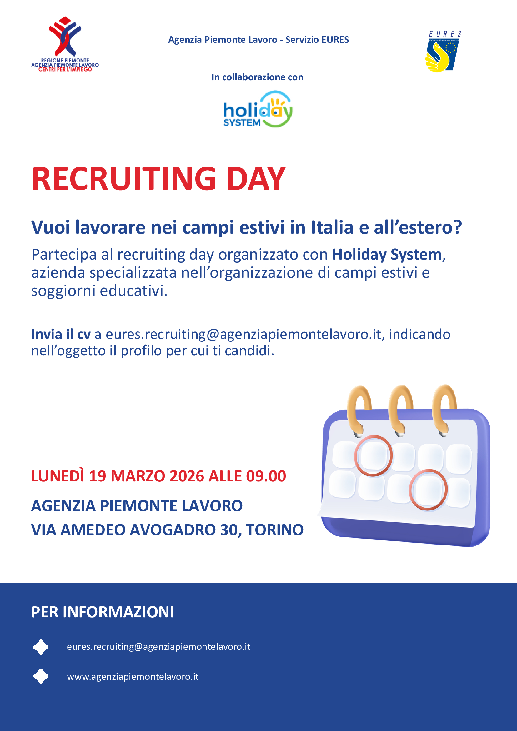 Partecipa al recruiting day organizzato con Holiday System, azienda specializzata nell’organizzazione di campi estivi e soggiorni educativi.